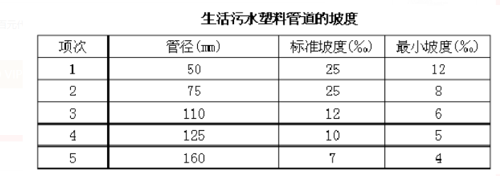 2、生活污水塑料管道的坡度必須符合設計要求或下表要求